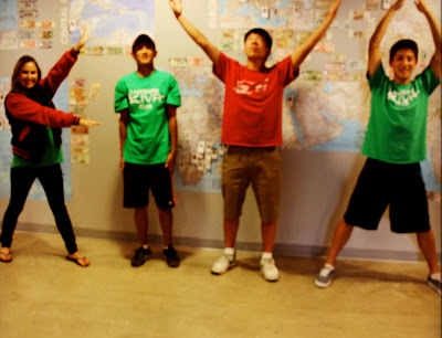 Me (Kiva's Blogger-in-Chief Kate Talbot, '02) with club leaders Bailey Wu, Jarret Tom and Newton Kwan at Kiva HQ wearing our Campolinda & Kiva apparel.