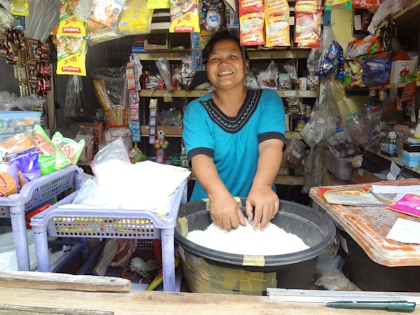 Ibu Masripah, a VisionFund Indonesia client, was delighted to report on the success of her kiosk and participate in an impromptu photo shoot.